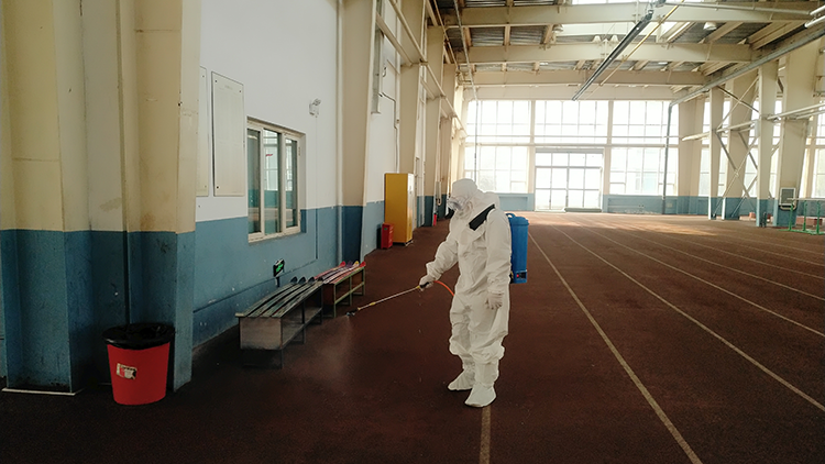 在学生进驻之前,学校对所有室内公共场所、学生公寓进行全面消杀;对各场馆楼宇人员进出区域、电梯间等进行定时消杀和环境通风;对校园和各场馆内外环境卫生进行清扫,确保校园环境和场馆楼宇卫生整洁。在各场馆楼宇指定位置配备废弃口罩回收专用桶,做好废弃口罩安全处置。