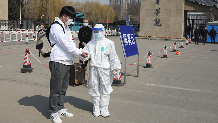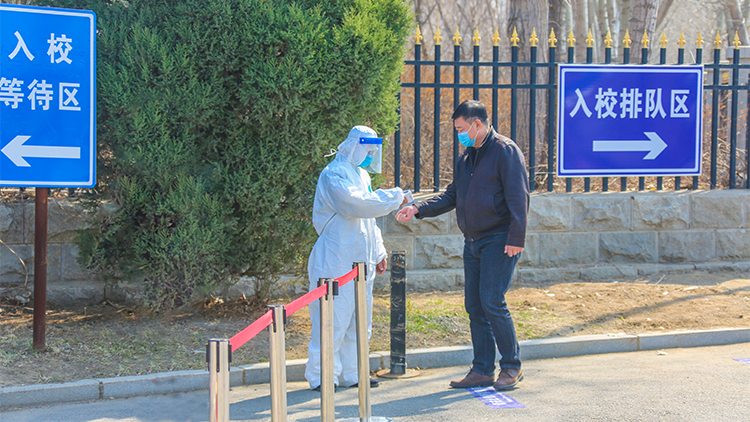 学生返校等待身份验证和体温检测