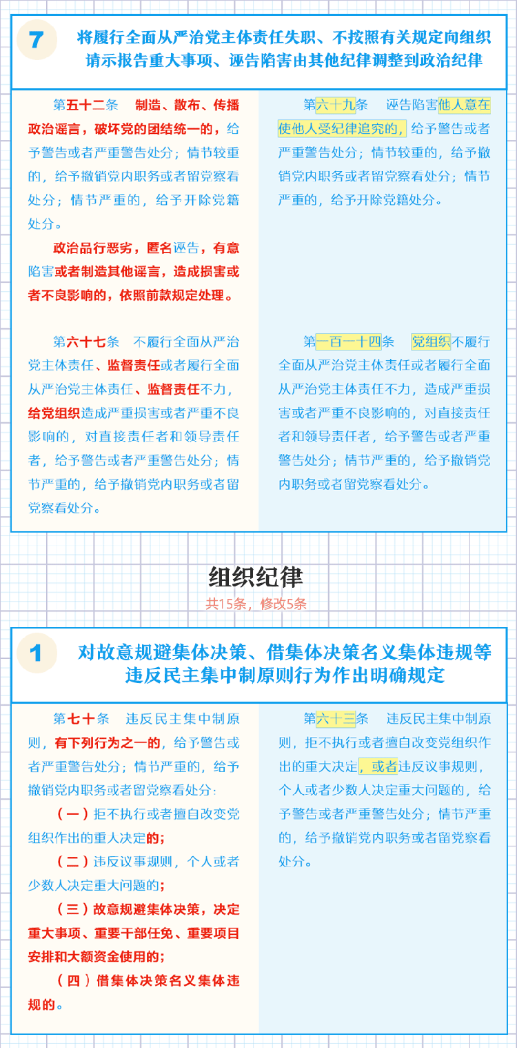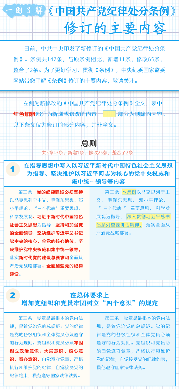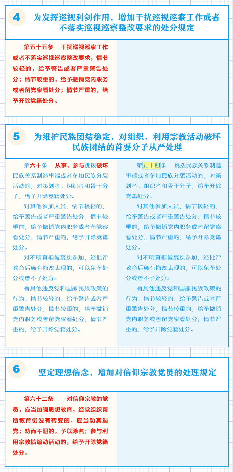 一图了解《中国共产党纪律处分条例》修订的主要内容 2018年11月21日 09:58 点击:[] 上一条:【给“两面人”画个像】之一 台上一套台下一套,当面一套背后一套 下一条:【一定之规·党纪处分条例】这些事千万不能做!生活纪律新规 【关闭】