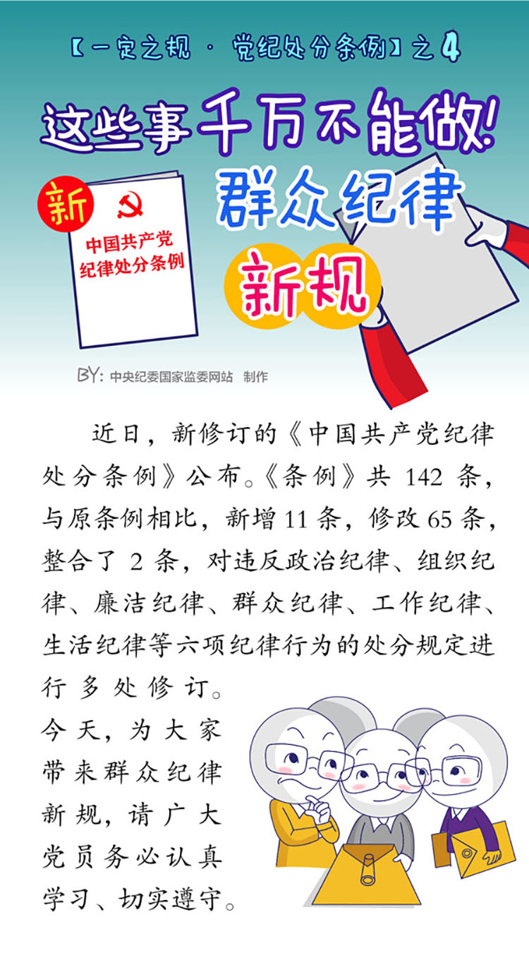 【一定之规·党纪处分条例】 这些事千万不能做!群众纪律新规 2018年09月12日 20:11 点击:[] 上一条:【一定之规·党纪处分条例】这些事千万不能做!政治纪律新规 下一条:【一定之规·党纪处分条例】这些事千万不能做!组织纪律新规 【关闭】